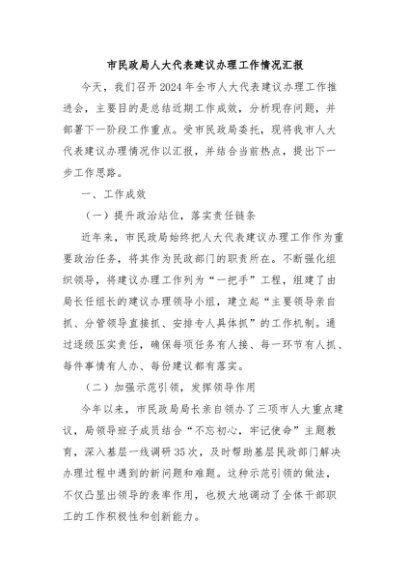 / 【七哥公文】2024年:市民政局人大代表建议办理工作情况汇报+更多免费公文+VX:QiGeGongWen2024