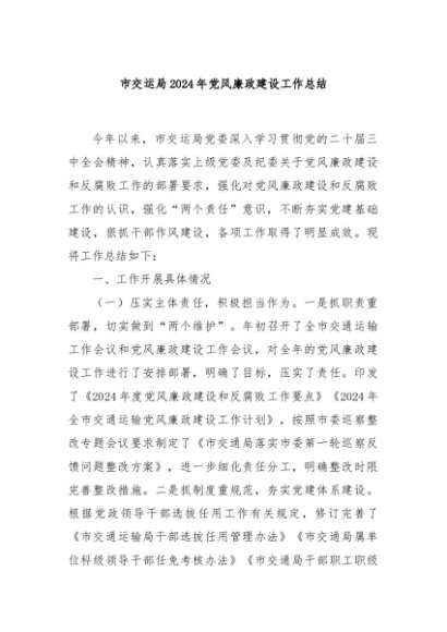 / 【七哥公文】2024年:市交运局2024年党风廉政建设工作总结+更多免费公文+VX:QiGeGongWen2024