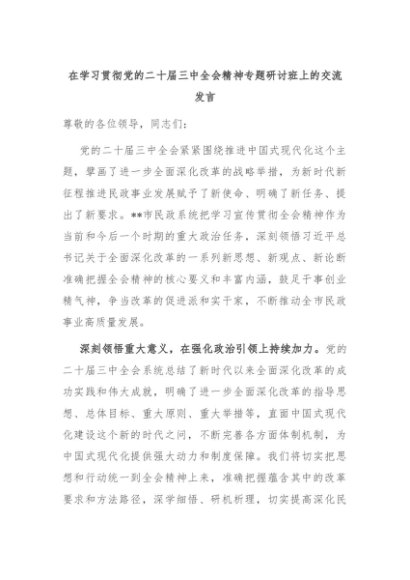 【七哥公文】2024年:在学习贯彻党的二十届三中全会精神专题研讨班上的交流发言+更多免费公文+VX:QiGeGongWen2024