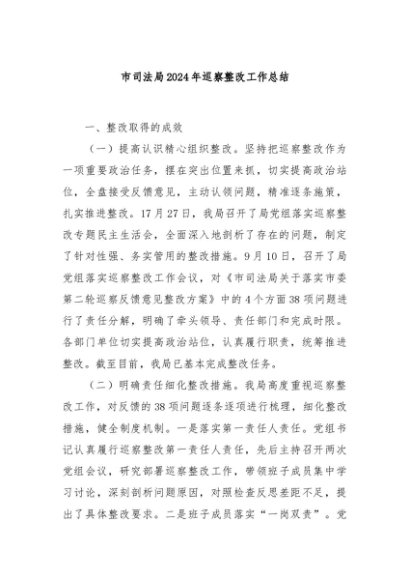/ 【七哥公文】2024年:市司法局2024年巡察整改工作总结+更多免费公文+VX:QiGeGongWen2024