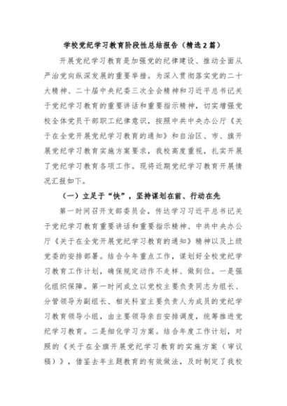 / 【七哥公文】2024年:学校党纪学习教育阶段性总结报告(精选2篇)+更多免费公文+VX:QiGeGongWen2024