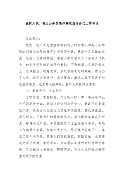 / 【七哥公文】2024年:在新入职、转正公务员集体廉政谈话会议上的讲话+更多免费公文+VX:QiGeGongWen2024