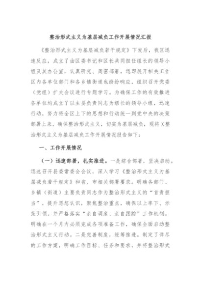 / 【七哥公文】2024年:整治形式主义为基层减负工作开展情况汇报+更多免费公文+VX:QiGeGongWen2024