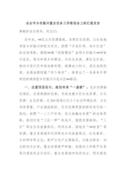 / 【七哥公文】2024年:在全市乡村振兴重点任务工作推进会上的汇报发言+更多免费公文+VX:QiGeGongWen2024
