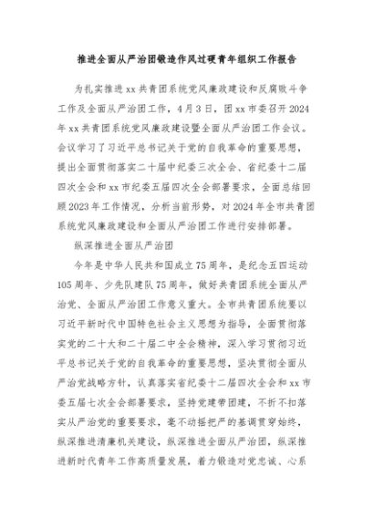 / 【七哥公文】2024年:推进全面从严治团锻造作风过硬青年组织工作报告+更多免费公文+VX:QiGeGongWen2024