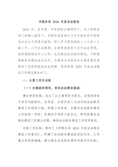 / 【七哥公文】2024年:市税务局 2024 年度述法报告+更多免费公文+VX:QiGeGongWen2024