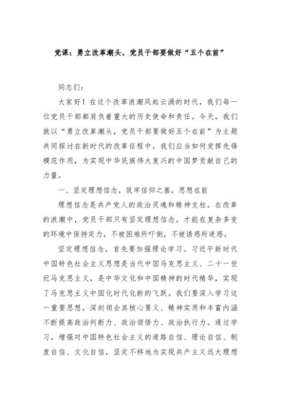 / 【七哥公文】2024年:党课:勇立改革潮头,党员干部要做好“五个在前”+更多免费公文+VX:QiGeGongWen2024