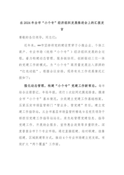 【七哥公文】2024年:在2024年全市“小个专”经济组织发展推进会上的汇报发言+更多免费公文+VX:QiGeGongWen2024