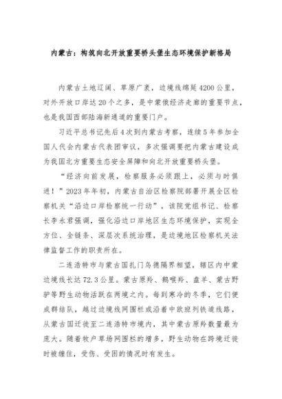 / 【七哥公文】2024年:内蒙古:构筑向北开放重要桥头堡生态环境保护新格局+更多免费公文+VX:QiGeGongWen2024