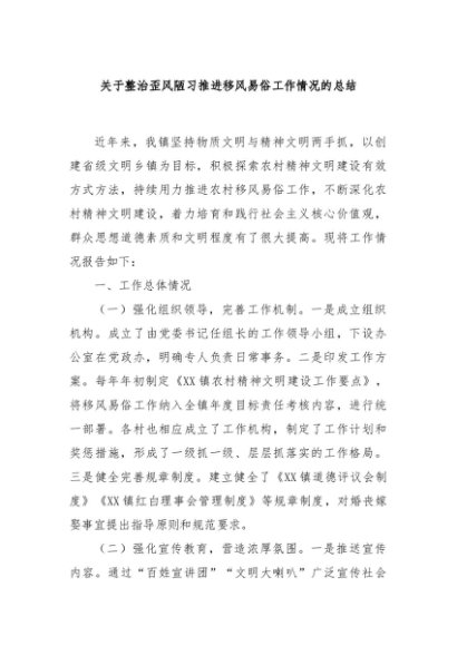 / 【七哥公文】2024年:关于整治歪风陋习推进移风易俗工作情况的总结+更多免费公文+VX:QiGeGongWen2024