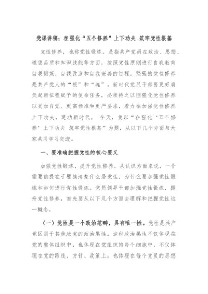 【七哥公文】2024年:党课讲稿:在强化“五个修养”上下功夫 筑牢党性根基+更多免费公文+VX:QiGeGongWen2024