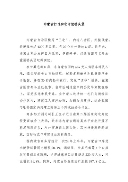 【七哥公文】2024年:内蒙古打造向北开放桥头堡+更多免费公文+VX:QiGeGongWen2024