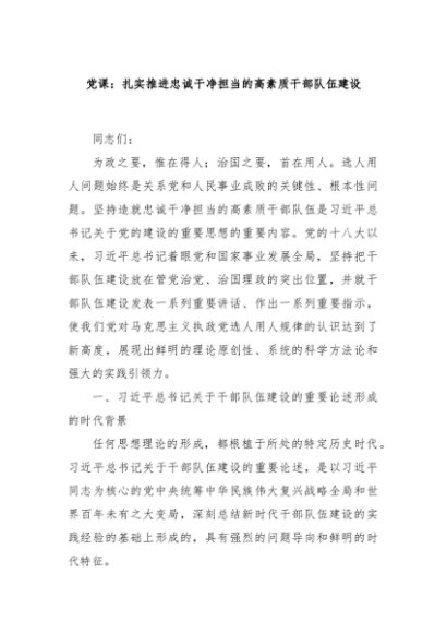 / 【七哥公文】2024年:党课:扎实推进忠诚干净担当的高素质干部队伍建设+更多免费公文+VX:QiGeGongWen2024