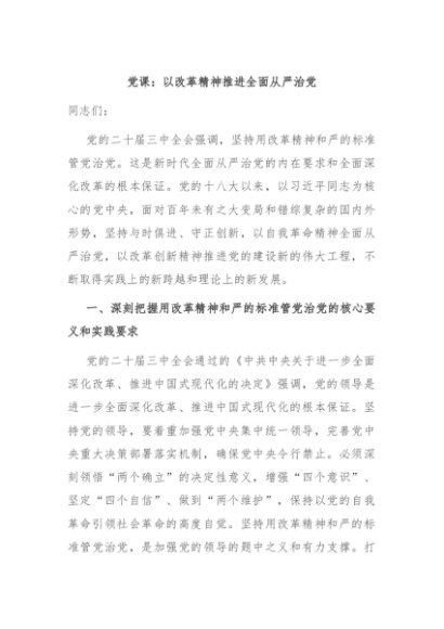 / 【七哥公文】2024年:党课:以改革精神推进全面从严治党+更多免费公文+VX:QiGeGongWen2024