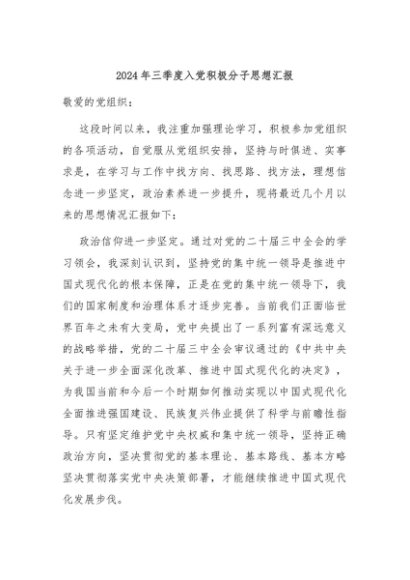 / 【七哥公文】2024年:2024年三季度入党积极分子思想汇报+更多免费公文+VX:QiGeGongWen2024