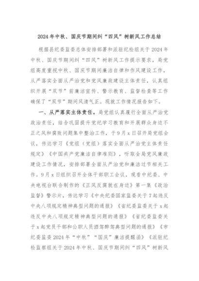 【七哥公文】2024年:2024年中秋、国庆节期间纠“四风”树新风工作总结 (1)+更多免费公文+VX:QiGeGongWen2024