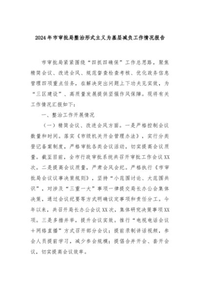 【七哥公文】2024年:2024年市审批局整治形式主义为基层减负工作情况报告+更多免费公文+VX:QiGeGongWen2024