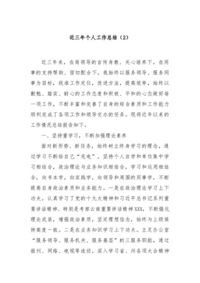 【七哥公文】2024年:近三年个人工作总结(2)+更多免费公文+VX:QiGeGongWen2024