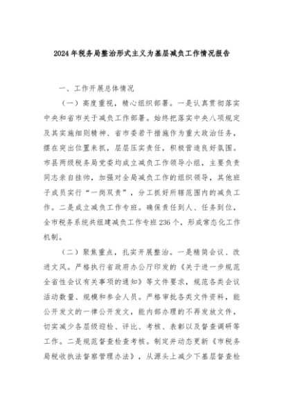 【七哥公文】2024年:2024年税务局整治形式主义为基层减负工作情况报告+更多免费公文+VX:QiGeGongWen2024