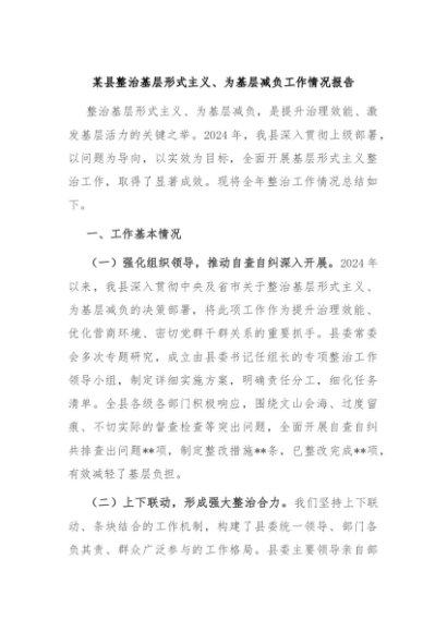 / 【七哥公文】2024年:某县整治基层形式主义、为基层减负工作情况报告+更多免费公文+VX:QiGeGongWen2024
