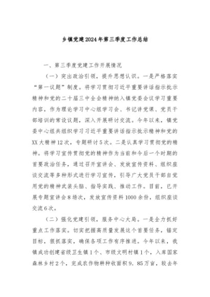 / 【七哥公文】2024年:乡镇党建2024年第三季度工作总结+更多免费公文+VX:QiGeGongWen2024