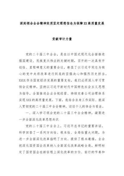 【七哥公文】2024年:深刻领会全会精神实质坚定理想信念为保障XX高质量发展贡献审计力量+更多免费公文+VX:QiGeGongWen2024