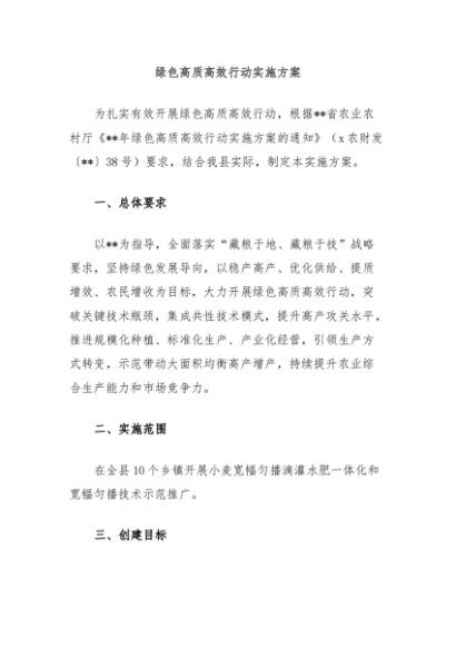 / 【七哥公文】2024年:绿色高质高效行动实施方案+更多免费公文+VX:QiGeGongWen2024