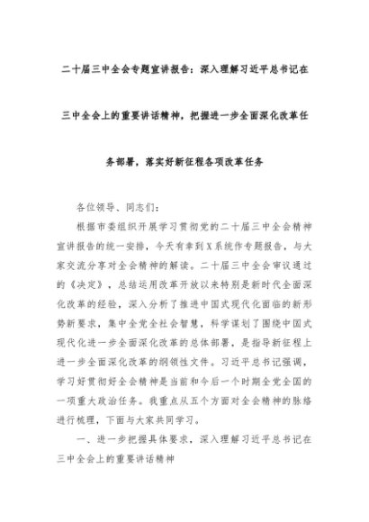 【七哥公文】2024年:二十届三中全会专题宣讲报告:深入理解习近平总书记在三中全会上的重要讲话精神,把握进一步全面深化改革任务部署,落实好新征程各项改革任务+更多免费公文+VX:QiGeGongWen2024