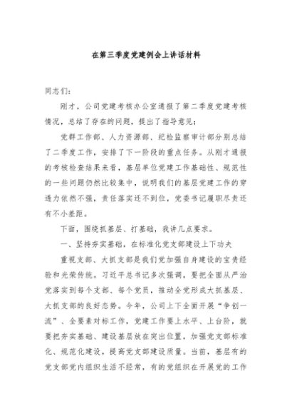/ 【七哥公文】2024年:在第三季度党建例会上讲话材料+更多免费公文+VX:QiGeGongWen2024
