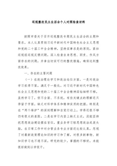 / 【七哥公文】2024年:巡视整改民主生活会个人对照检查材料+更多免费公文+VX:QiGeGongWen2024