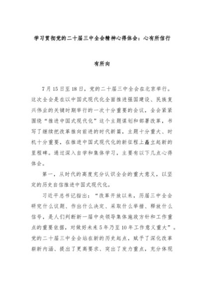 【七哥公文】2024年:学习贯彻党的二十届三中全会精神心得体会:心有所信行有所向+更多免费公文+VX:QiGeGongWen2024