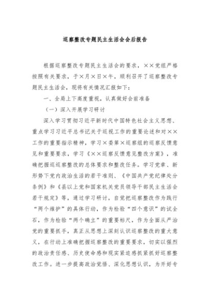 / 【七哥公文】2024年:巡察整改专题民主生活会会后报告+更多免费公文+VX:QiGeGongWen2024
