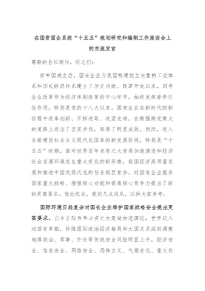 【七哥公文】2024年:在国资国企系统“十五五”规划研究和编制工作座谈会上的交流发言+更多免费公文+VX:QiGeGongWen2024
