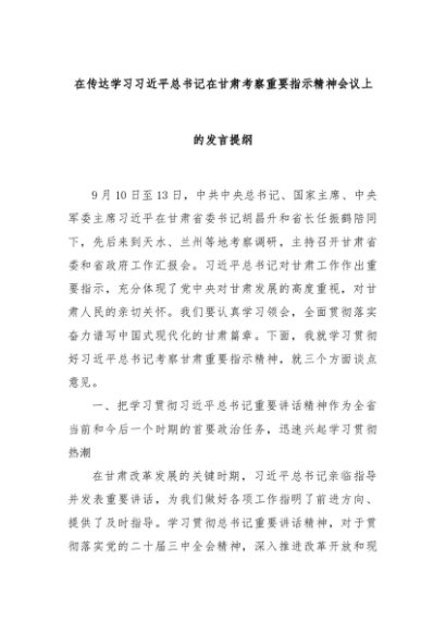 【七哥公文】2024年:在传达学习习近平总书记在甘肃考察重要指示精神会议上的发言提纲+更多免费公文+VX:QiGeGongWen2024