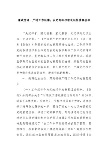 【七哥公文】2024年:廉政党课:严明工作纪律,以更高标准锻造纪检监察铁军+更多免费公文+VX:QiGeGongWen2024
