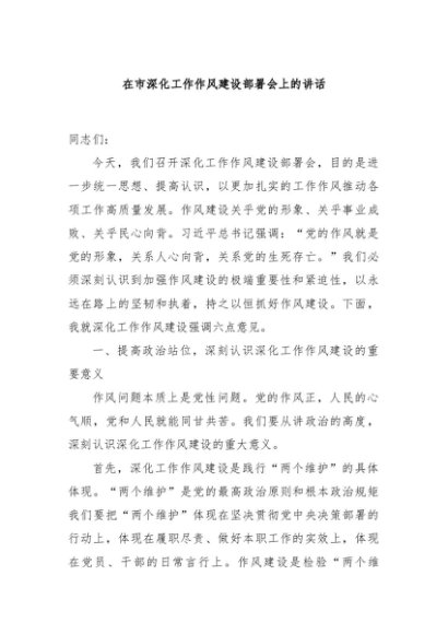 / 【七哥公文】2024年:在市深化工作作风建设部署会上的讲话+更多免费公文+VX:QiGeGongWen2024