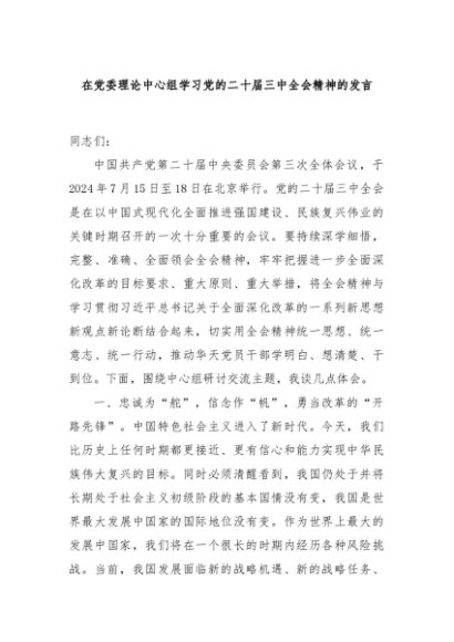 / 【七哥公文】2024年:在党委理论中心组学习党的二十届三中全会精神的发言+更多免费公文+VX:QiGeGongWen2024