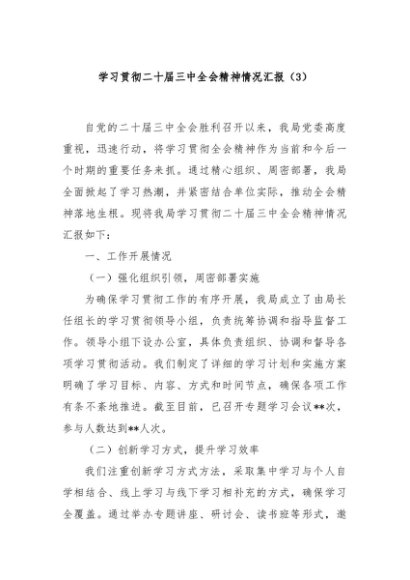 / 【七哥公文】2024年:学习贯彻二十届三中全会精神情况汇报(3)+更多免费公文+VX:QiGeGongWen2024