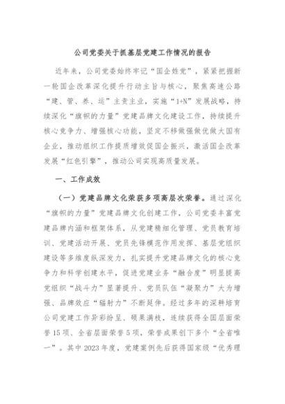 / 【七哥公文】2024年:公司党委关于抓基层党建工作情况的报告+更多免费公文+VX:QiGeGongWen2024