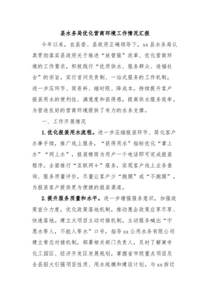 / 【七哥公文】2024年:县水务局优化营商环境工作情况汇报+更多免费公文+VX:QiGeGongWen2024