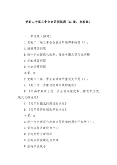 / 【七哥公文】2024年:党的二十届三中全会的测试题(50道,含答案)+更多免费公文+VX:QiGeGongWen2024