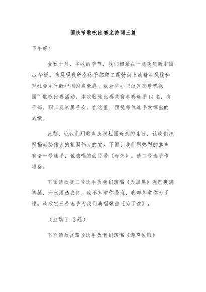 / 【七哥公文】2024年:国庆节歌咏比赛主持词三篇+更多免费公文+VX:QiGeGongWen2024