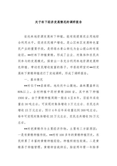 / 【七哥公文】2024年:关于林下经济发展情况的调研报告+更多免费公文+VX:QiGeGongWen2024