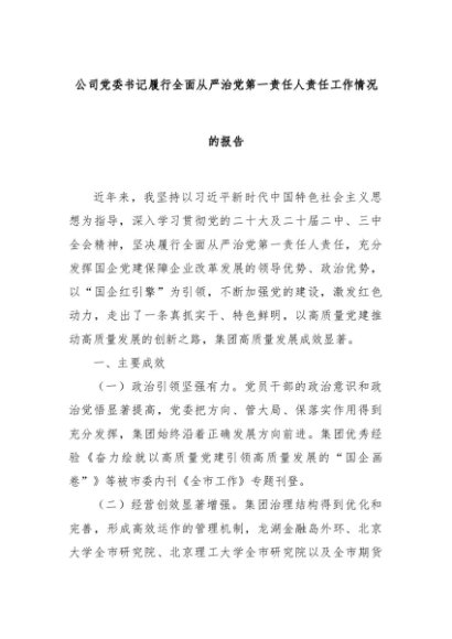 【七哥公文】2024年:公司党委书记履行全面从严治党第一责任人责任工作情况的报告+更多免费公文+VX:QiGeGongWen2024