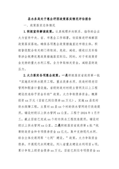 / 【七哥公文】2024年:县水务局关于惠企纾困政策落实情况评估报告+更多免费公文+VX:QiGeGongWen2024