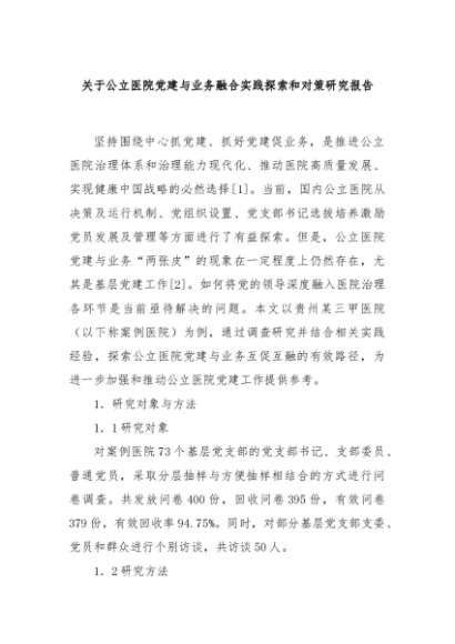 / 【七哥公文】2024年:关于公立医院党建与业务融合实践探索和对策研究报告+更多免费公文+VX:QiGeGongWen2024