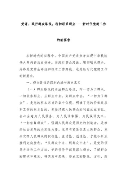 【七哥公文】2024年:党课:践行群众路线,密切联系群众——新时代党建工作的新要求+更多免费公文+VX:QiGeGongWen2024