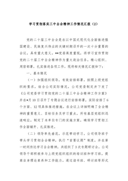 / 【七哥公文】2024年:学习贯彻落实三中全会精神工作情况汇报(2)+更多免费公文+VX:QiGeGongWen2024