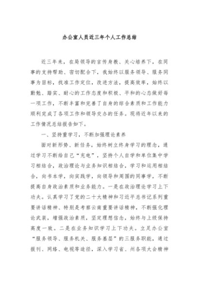 / 【七哥公文】2024年:办公室人员近三年个人工作总结 (1)+更多免费公文+VX:QiGeGongWen2024