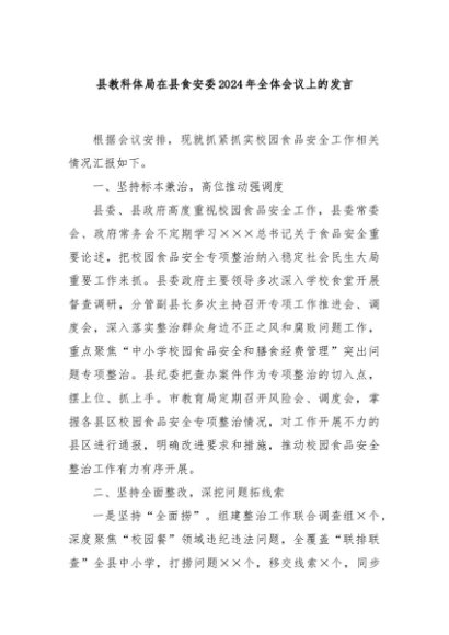 / 【七哥公文】2024年:县教科体局在县食安委2024年全体会议上的发言+更多免费公文+VX:QiGeGongWen2024